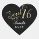 Adesivo Coração Black Dourado Sweet 16th White Heart Data