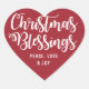 As Bênçãos de Natal brancas e festivas são belas contra um fundo vermelho escuro. O amor pela paz e a alegria estão escritos abaixo em uma letra branca. O adesivo de forma cardíaca ficará maravilhoso nas suas cartas de Natal e no presente de Natal. Agradeço por olhar para os meus produtos no Zazzle. Desejo-lhe um Feliz Natal.