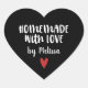 Um adesivo personalizado "caseiro com amor" em um fundo de cor preta em forma de coração. Faça-o seu adicionando seu próprio nome. Um bonito toque final para todos os presentes feitos à mão. Projetado para você pelo Blackberry Boulevard.
