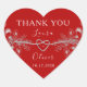 Elegante, moderno, adesivo de agradecimento de casamento de coração vermelho para lembrancinhas com renda floral boho.