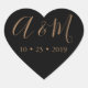 Adesivo Coração Casamento Elegante de Monograma Dourado Negro