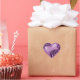 Um belo adesivo cardíaco com rolagem branca-prateada num coração cor violeta, perfeito para adorar páginas de álbuns ou usado como selo de envelope.