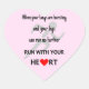Suas pernas estão pesadas, seus pulmões estão explodindo, mas a corrida ainda não acabou. A determinação vai manter-te a andar à medida que fugires do teu coração. O texto é preto com coração vermelho, e há um fundo rosa pálido com a silhueta de um corredor.