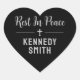 Etiquetas de serviço memorial em forma de coração a preto com texto de cinza pálido. Adicione o nome do seu amado sob uma cruz e descanse em paz.