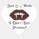 Apenas Diga Alô é uma imagem de lábios de marrom profundos com presas salientes com texto adicional que diz Não Mordo Promessa. Diga Olá