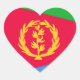 Bandeira da Eritreia. A atual bandeira do Estado da Eritreia foi adotada no dia 5 de dezembro de 1995 e utiliza a bandeira da Frente de Libertação da Pessoas da Eritreia, com a coroa com símbolo de ramificação de oliveira ereta, derivado da bandeira de 1952. A bandeira é dominada por um triângulo vermelho que se estende do guincho à mosca, com triângulos verdes e azuis complementares acima e abaixo. Verde significa a fertilidade do país, respectivamente, para a agricultura; azul significa mar (mar vermelho); e vermelho para o sangue perdido na luta pela liberdade. No triângulo vermelho, um símbolo amarelo de coroa, com 14 folhas em cada lado, derivadas da bandeira de 1952, substitui a estrela amarela da bandeira EPLF.