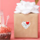Grande imagem da silhueta de notas e clefs musicais em forma de coração, pequena imagem de um coração vermelho atrás das notas negras. Texto que eu te amo à esquerda do coração vermelho. Fundo branco. Um adesivo em forma de coração para qualquer um. Personalizável. Você pode mudar o texto.