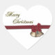 Cor vermelha e branca clássicas com guião dourada Feliz Natal e dois sinos com holly numa fita vermelha. Bela aparência limpa e clássica para seu adesivo em forma de coração.