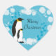 Adesivo Coração feliz natal, natal, pinguim, flores, azul,