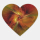 Adesivo Coração Flor de Arte Fractal Abstrato Vermelho Laranja Mar