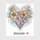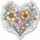 Flores bonito num autocolante de ouro cardíaco. Tatuagem estilo arte coração floral.
