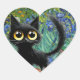 Adesivo Coração Gato Negro Escocês num campo de Irrisos Roxos