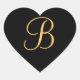 Adesivo Coração Monograma B, cor dourada inicial B a preto, classe