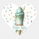 Sorvete Gender Reveal Party Voting Sticker Cute e o gênero moderno e moderno e moderno revelam um adesivo em forma de coração com uma ilustração aquosa do sorvete em cones de waffle, cor-de-rosa e azul, com abertura de sorvete dourado. O texto diz "garoto da equipe" Perfeito para uma festa que é revelação de gênero no verão.