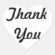 Um "obrigado você" em letras grandes e pretas cobrindo a maior parte da forma do coração branco.