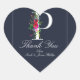 Adesivo Coração P Monograma Inicial Último Moderno Floral Azul Cas