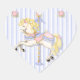 Um pônei de carrossel de circo bonito com mané e cauda fluidos. Flores cor-de-rosa e Lavanda azuis e sotaques cardíacos cor-de-rosa. Bonito fundo azul de faixa azul pastel.