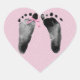 Par de pegadas de recém-nascidos de uma menina em fundo de bolinhas rosa e branca. O texto pode ser adicionado.