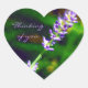 Uma delicada picada de lavanda roxa contra um fundo natural de verde, com texto suave dizendo "Pensando em você".