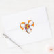 Um adorável adesivo em forma de coração que apresenta uma ilustração original minha. Duas pequenas pássaros vermelhos bonitinhos (também conhecidas como joaninhas) se apaixonaram pelas pétalas de uma flor margarida branca. O fundo é amarelo vívido e dourado e dá um design muito brilhante.