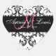 Adesivo Coração Preto Damasco Rosa, Favor do Casamento Inicial