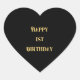 Adesivo Coração Primeiro aniversario Feliz, Dourado Negro, Primeir