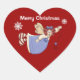 Um adesivo em forma de coração vermelho apresenta um belo anjo primitivo balançando uma estrela com sotaques de neve. Legenda de texto personalizável. Criado com a clipart por Alice Smith comprado em digiwebstudio.com