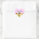 Adesivo Coração Rosa claro Onda Dourada com Monograma Obrigado