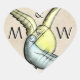 Personalize esses adesivos elegantes em forma de coração com os monogramas do casal de casamento e use-os para selar envelopes, partidarizar bolsas, colocar cartões e muito mais! Apresenta uma pintura digital original de um par de "kissy-face" Love Birds (1 amarelo-limão, 1 azul-claro) que lembra uma pintura de carvão e aquarela em velo manchado com chá.