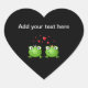 Um casal de sapos verdes bonitos com corações vermelhos em um fundo preto comum.