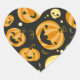 Um adesivo de forma cardíaca mostrado com um impressão festivo de abóboras de Halloween. Personalize este item ou comprar como está. com.