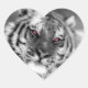 Linda fotografia branca e negra de um tigre com olhos cor-de-rosa deitado na neve.