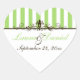 Este tom de maçã verde e listras brancas com rolas marrons e adesivos de casamento combina com o convite de casamento mostrado abaixo, e é uma forma perfeita de enviar um convite bem coordenado, ou você pode usá-lo para anexar aos seus favores de casamento. Outras formas e tamanhos estão disponíveis.