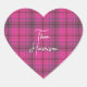 Adesivo Coração Xadrez escocês preppy rosa e roxo personalizado
