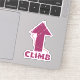 Um design de tipografia que tem a palavra subida e uma pintura de seta para cima. Corda correndo tece entre as letras da palavra escalada. Para quem ama esporte ou escalar trade.