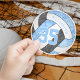 Este adesivo de vôlei personalizado apresenta a imagem estilizada de um voleibol azul-claro, preto e branco que tem um padrão caleidoscópico floral misturado com seus painéis azul-claro e preto - seu nome, número de camisa, é personalizável - por katz_d_zynes
