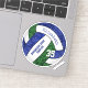 Este bonitinho adesivo de vôlei com nome personalizado de equipe e mascote escolar apresenta a imagem realista de um vôlei que tem um padrão caleidoscópico floral misturado com seus painéis azuis e verdes - seu nome e nome de equipe são personalizáveis, assim como seu número de camisa - por katz_d_zynes
