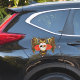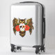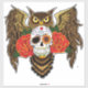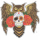 Uma coruja excelente corada com um dia do crânio de açúcar morto e rosas vermelhas num pano de fundo de laranja.