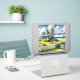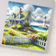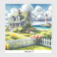 A dreamy coastal cottagecore landscape filled with soft watercolor charm and breezy seaside tranquility. A welcoming seaside cottage sits among lush garden paths, blooming flowers, and a bright white picket fence, creating a warm storybook atmosphere. In the distance, a tall lighthouse rises beside sparkling blue ocean waves, adding a classic nautical touch to this peaceful coastal setting. Fluffy clouds drift across a vibrant sky while sunlight washes over pastel florals, green lawns, and cheerful garden beds. The gentle brushstroke style gives the scene a whimsical, painterly feel reminiscent of cozy coastal living, cottage gardens, and relaxed seaside afternoons. Fresh spring colors, airy ocean blues, and soft floral pinks blend beautifully to create an enchanting cottagecore aesthetic that feels calm, nostalgic, and full of coastal charm. AI generated artwork.