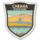 Trabalho de arte do Parque Estadual de Cheaha em um design de crachá. Está rodeada pela Floresta Nacional de Talladega, este morro das Montanhas Appalachian mantém a reputação do ponto mais alto do Alabama.