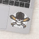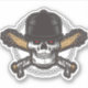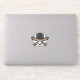 Este adesivo ostenta um crânio pirata impressionante com olhos vermelhos perfurantes que exaltam um ar de mistério e rebelião.
