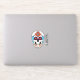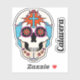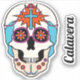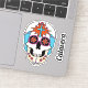 O trabalho de arte gráfico deste adesivo contornado apresenta um crânio de açúcar ilustrado, ou calavera, decorado com miçangas e flores, bem como uma cruz cristã em cada testa. Há também um adesivo de texto separado que pode ser personalizado.