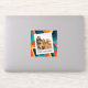 Create your own custom photo sticker. Simply add one of your favorite pictures and personalized text in vintage typewriter typography on a color retro stripes background.
