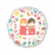 Bela biblioteca de crianças lendo design. Arte infantil de desenhos animados. Bonita e divertida