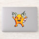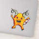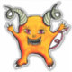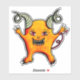 Um adesivo demônio bonito com desenho de tinta de uma criatura amarela estranha com chifres sorrindo alegremente e mostrando seus dentes afiados.