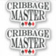 2X Cribbage master bragging rights texto preto com símbolos coloridos de traje de cartão.