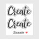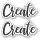Autocolantes com a palavra "criar" numa letra de escrita elegante