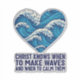 O design de coração azul oceânico repleto de ondas e a mensagem simples que "o Cristo sabe quando fazer ondas e quando acalmá-las".