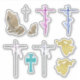 Uma bela folha de 10 etiquetas pegajosas, composta por uma estátua grande e pequena, em forma de bronze, de mãos rezantes; uma pequena cruz prateada; uma cruz rosa e azul com folhas da mesma cor envolta em torno da vertical direita; duas cruzes prateadas com uma fita embrulhada em volta da qual a cruz se intersetava, respectivamente, num rosa pálido e azul-pálido; uma cruz-cinza-cética e dois anjos Flexibindo trompetes enquanto voava.