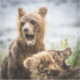 Cães de urso castanho costeiro à procura da sua mãe em Silver Salmon Creek, no Alasca. No Parque Nacional do Lago Clark, as mulheres aprenderam a tirar proveito da presença humana. As mães com filhotes estão particularmente cientes do perigo que os ursos machos representam para os seus descendentes. Quase um em cada três filhotes são mortos por machos durante o acasalamento, que se estende do início de maio ao médio de julho.